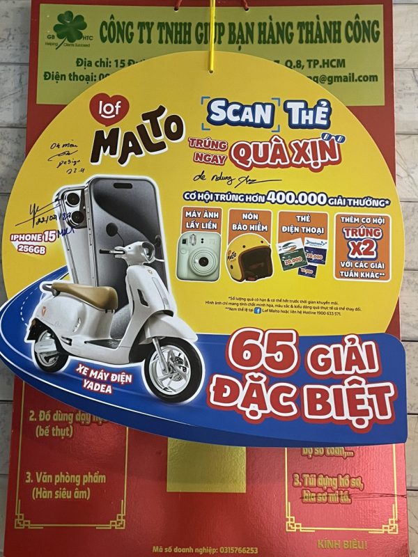 sản xuất Vật phẩm quảng cáo:  Dangler nhựa, hanger nhựa. In offset UV, in 4 màu CMYK, 2 mặt, bế (die cut) gia nhiệt. Đặc biệt chuyên in, sản xuất Dangler nhựa dày 8 zem (dày 0.8mm).