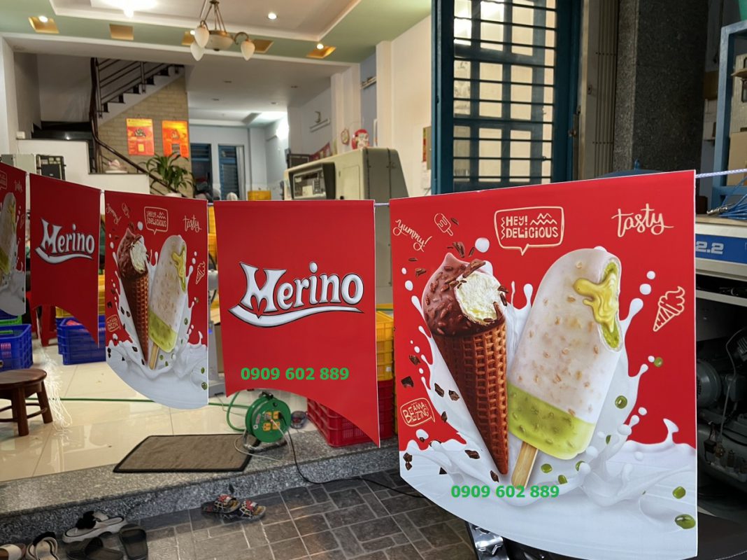 sản xuất Vật phẩm quảng cáo – Cờ dây nhựa (Bunting). In offset UV, in 4 màu CMYK, 2 mặt, bế gia nhiệt, Hàn siêu âm