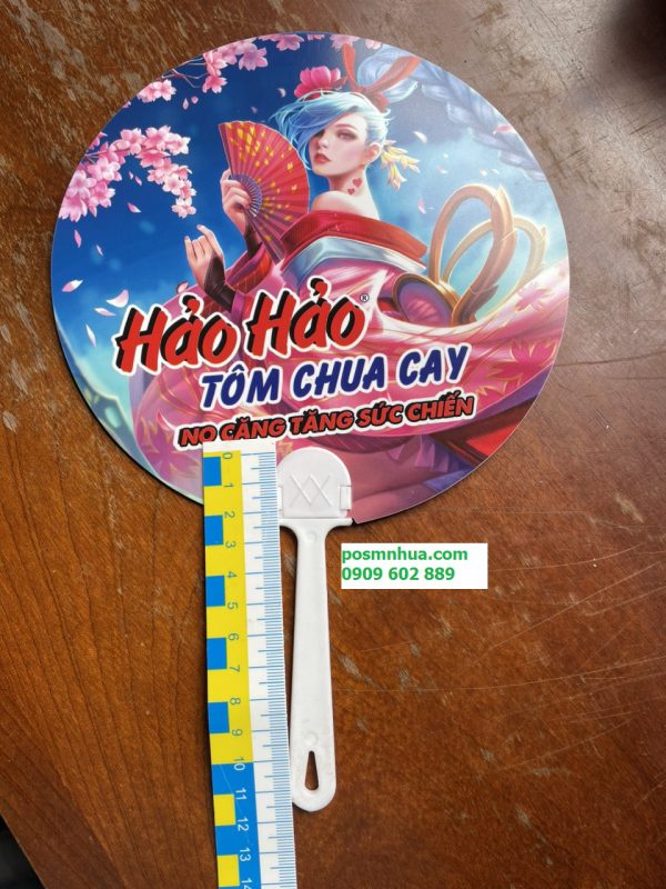 Sử dụng quạt nhựa pp để quảng cáo sẽ ưu việt hơn rất nhiều. Bởi bạn có thể in bất cứ hình ảnh nào lên quạt – những hình ảnh sản phẩm, hay những thông tin quảng cáo của doanh nghiệp bạn lên những chiếc quạt nhựa pp cao cấp này.