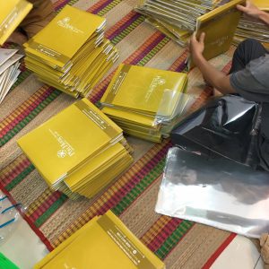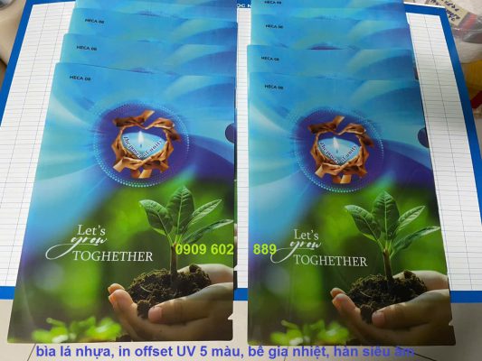 bìa lá, bìa nút có gắn name card tiện lợi, bìa lá, bìa nút in offset UV