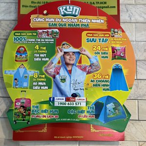 sản xuất Vật phẩm quảng cáo – Wobbler nhựa. In offset UV, in 4 màu CMYK, 2 mặt, bế gia nhiệt