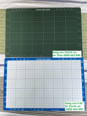 – Kích thước (400x600x0,5)mm, một mặt mầu trắng in dòng kẻ li dùng để viết bút dạ xoá được; một mặt màu xanh, dòng kẻ ô vuông trắng dùng để viết phấn. In offset UV – trên tấm nhựa PP dày 0.5mm.