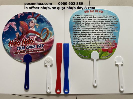 Quạt nhựa, Quạt nhựa quảng cáo, quạt nhựa dày 8 zem, quạt nhựa in offset