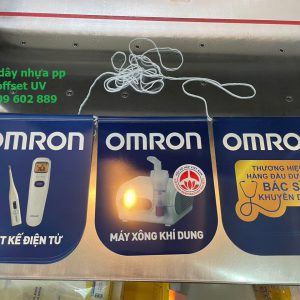 a/ Sản xuất Hanger nhựa, Danger nhựa: in trực tiếp trên nhựa PP dày từ 0.5mm đến 0.8mm, bế (die cut) gia nhiệt
