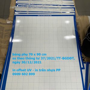 In trên nhựa PP, PET, PS, … sản xuất Bảng phụ dùng cho giáo viên. kích thước 70×90 cm. mặt A dùng viết phấn, mặt B dùng viết bút lông bảng.