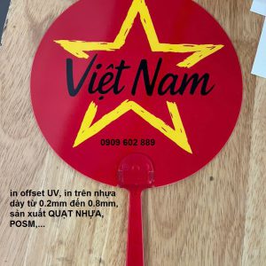 quạt nhựa Việt Nam, quạt nhựa cầm tay, quạt nhựa in offset UV, in theo yêu cầu (số lượng nhiều)