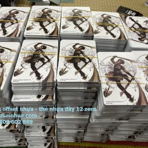 2/ Sản xuất Standee nhựa, Thẻ nhựa PET trong suốt, Thẻ nhựa PET trong suốt có ghép màng bảo vệ (màng từ tính, màng chống trầy): in offset UV trực tiếp trên nhựa PP, PVC, PET, PS dày từ 0.2mm đến 0.8mm, bế (die cut) gia nhiệt