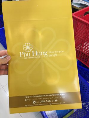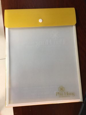 4. File hồ sơ – có túi đựng name card: nhựa PP, in offset UV, bế, hàn siêu âm